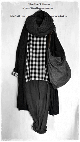 ■リネンサルエルパンツ/チャコールグレー ■ロングカーディガン ■ローウエストワンピ/チャコールグレー ■ベーシックプルオーバー/ミニ千鳥 ■フレアーワンピース