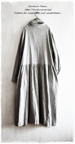 ■ ポケットワンピース/フレンチリネンフランネルオフホワイト ■ ギャザーカフスのワンピース/ブラック