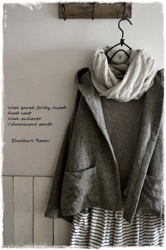 ウールは まだ早いけど、首元ボリューミーに したい!