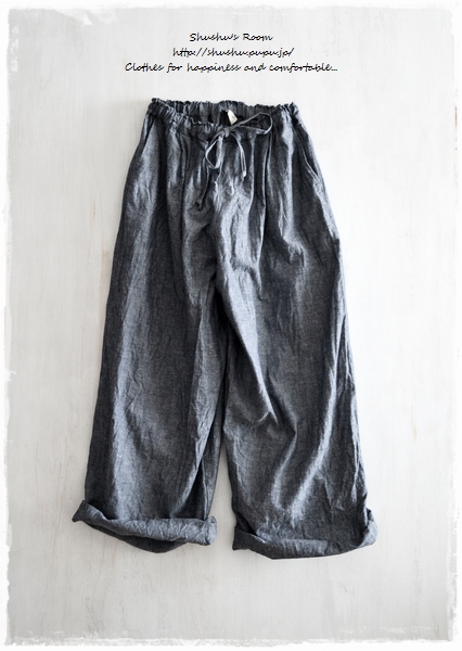ベルギーリネンのワイドパンツ、かなり素敵です*